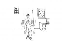 His colleague asks him right away, "Why is your hair so crazy?" -